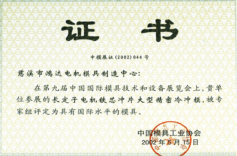 First prize of the 11th China International Mould Technology and Equipment Exhibition