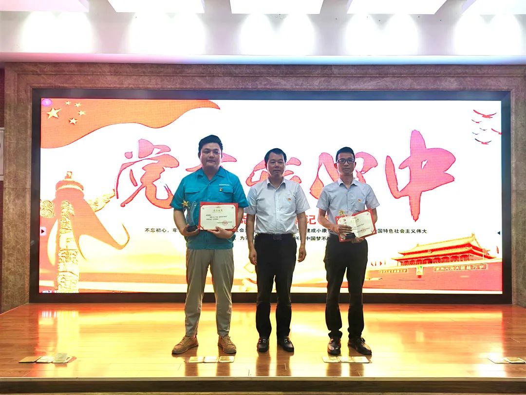 为先进优秀党员颁发奖杯和荣誉证书。